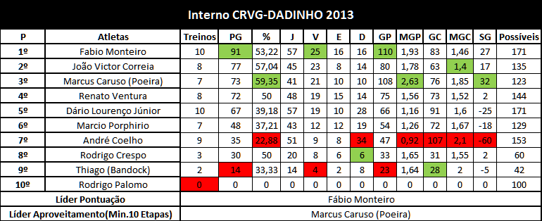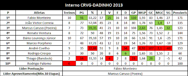 Vale lembrar que todo treino vale para a contagem de pontos do Campeonato Interno da modalidade. Confira então como esta a classificação atualizada da disputa: