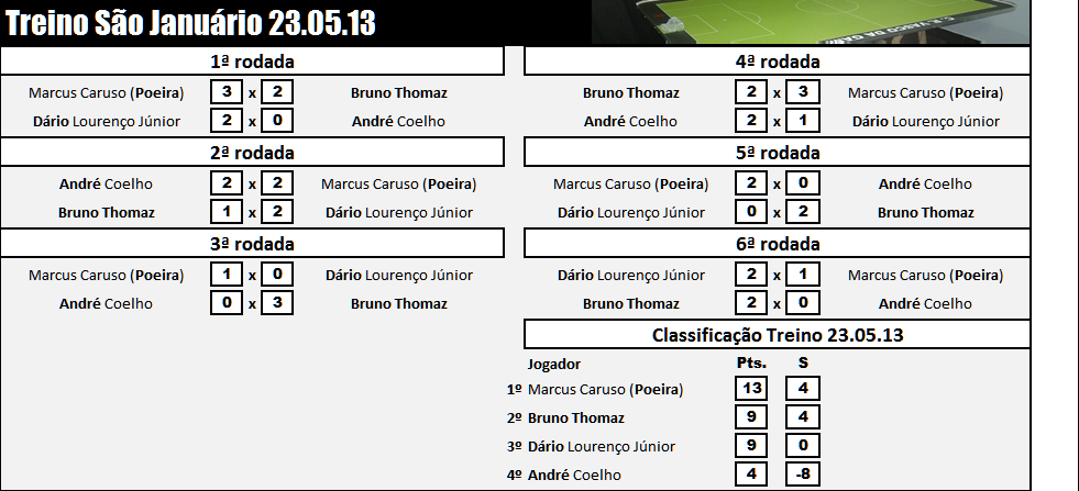 | Poeira é o primeiro a vencer 4 treinos.Ele é seguido por João com 3 vitórias, Renato com duas, e Dário e Fábio com uma cada.Porphirio, Crespo, André, Palomo, e Bandock ainda não venceram um treino. |