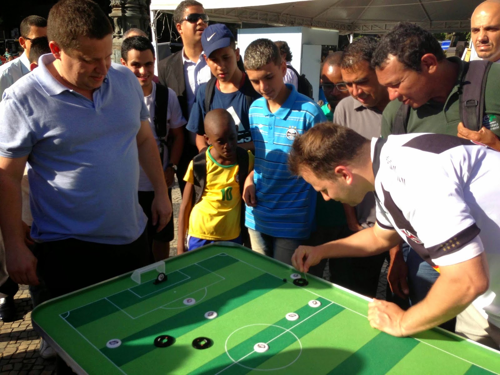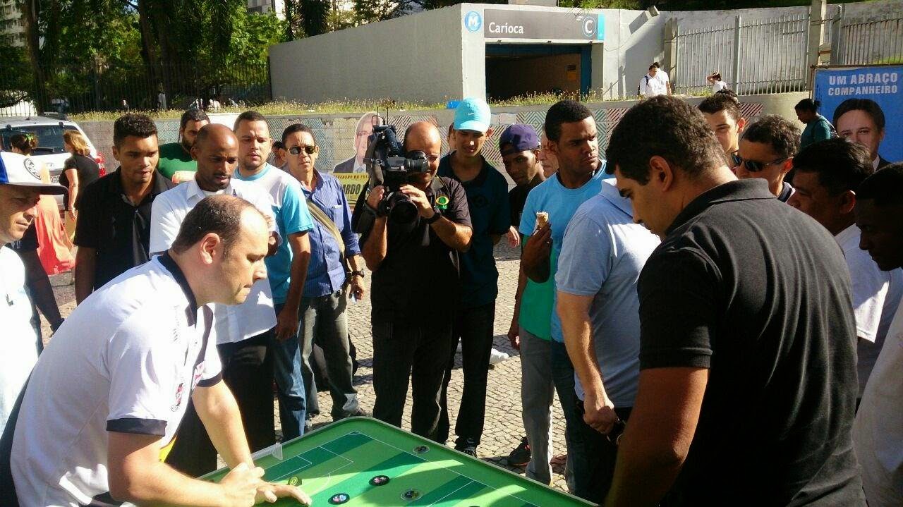 O apresentador Sandro Gama demonstrou seu talento para o esporte, fazendo uma disputa bastante animada com o vascaíno Igor Monteiro, que terminou com o placar de 2 x 1 a favor do atleta da colina.