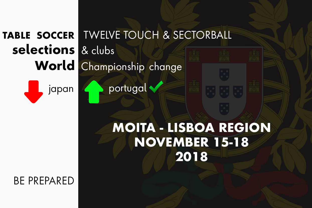 Portugal sediará o campeonato mundial das modalidades Sectorball e 12 Toques, sendo certo que, haverá ainda a disputa do Mundial interclubes que também estava previsto para ser realizado no Japão. Não houve mudança na data de sua realização, ou seja, segue mantido o período de 15 até 18 de Novembro de 2018.
